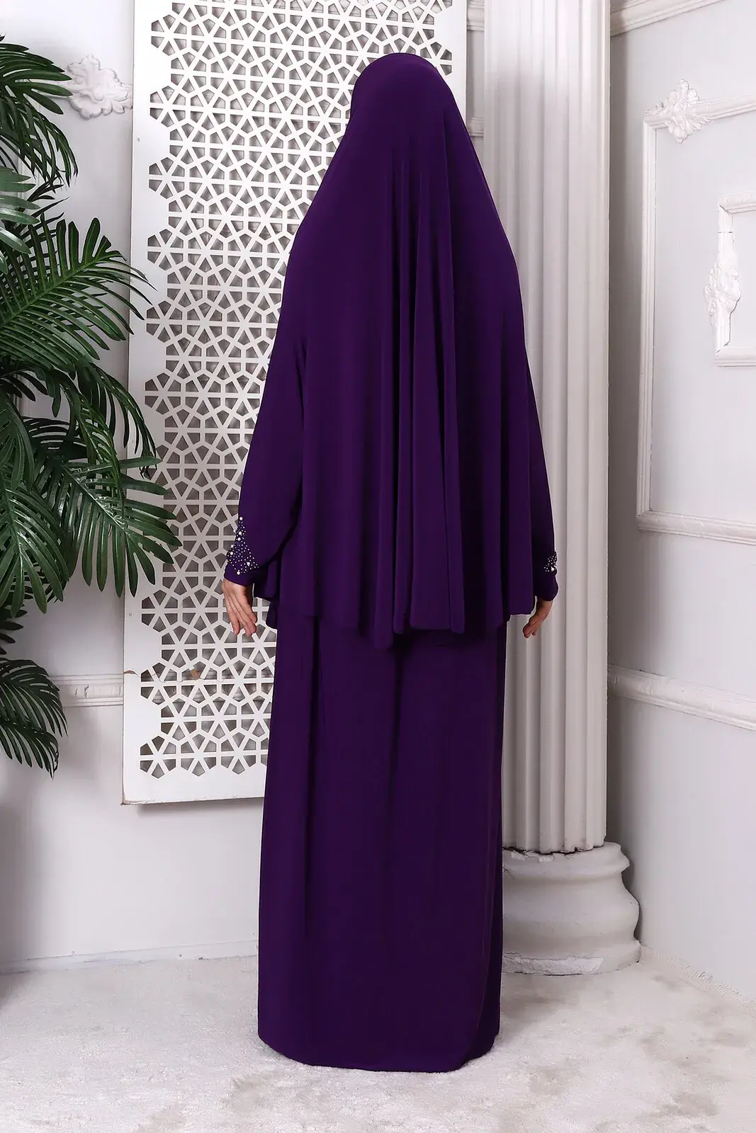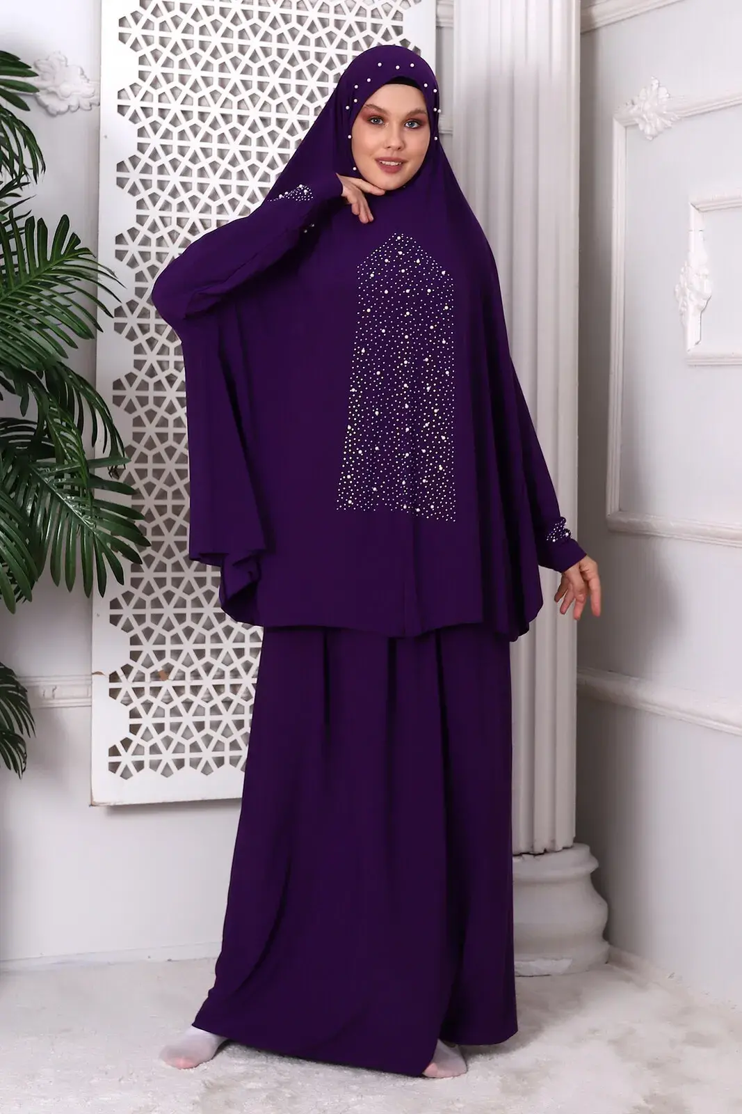 Two Pieces Stone Top and Bottom Practical Prayer Dress 8017 Purple
