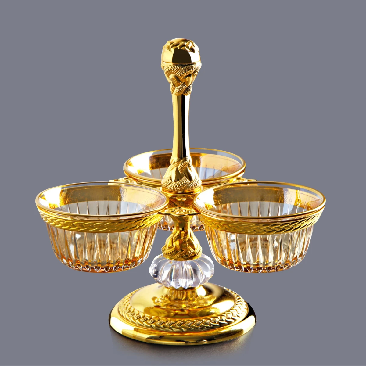 Üçlü Cam Sunumluk Çerezlik - Gold