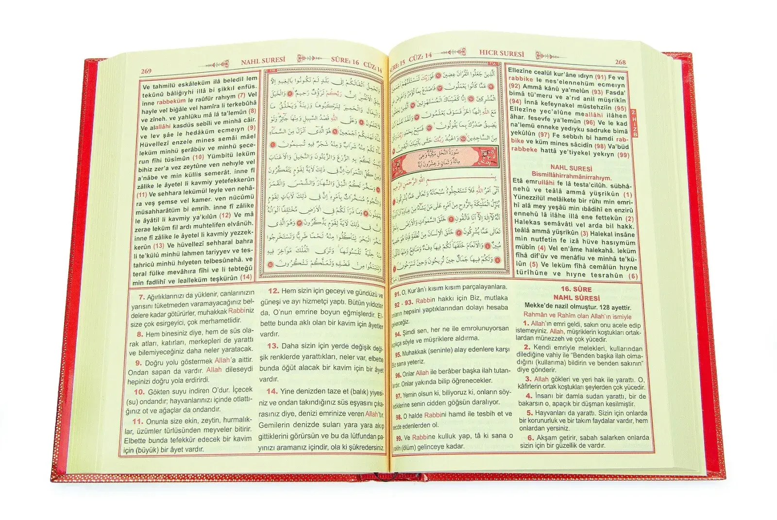 Arapça metni, Türkçe okunuşu ve merhum Elmalılı Hamdi Yazır’ın mealini bir arada sunan özel bir baskıdır. Bilgisayar hatlı yapısı sayesinde kolay okunur ve anlaşılır bir deneyim sunar. Türkçe okunuş kısmı, Arapça bilmeyenlerin de Kur’an’ı doğru telaffuzla okuyabilmesine yardımcı olur. Mehmet Şirin Doğan tarafından sadeleştirilen bu eser, orta boy ölçüsüyle hem evde hem de seyahatte rahatlıkla kullanılabilir.