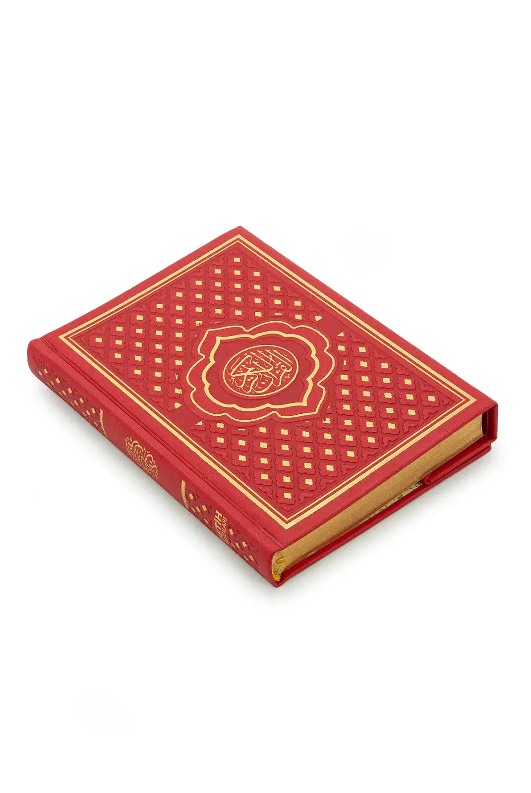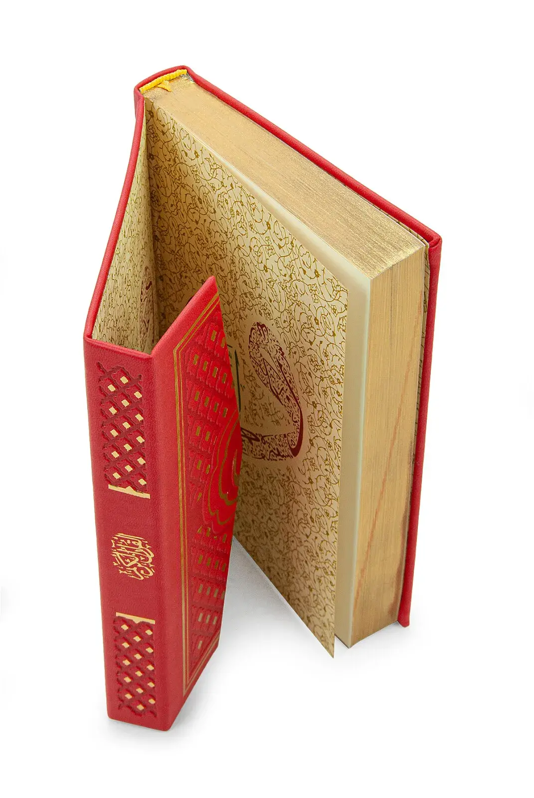 Vav Desenli Termo Deri Ciltli Sade Arapça Hafız Boy Kuran-ı Kerim Kırmızı
