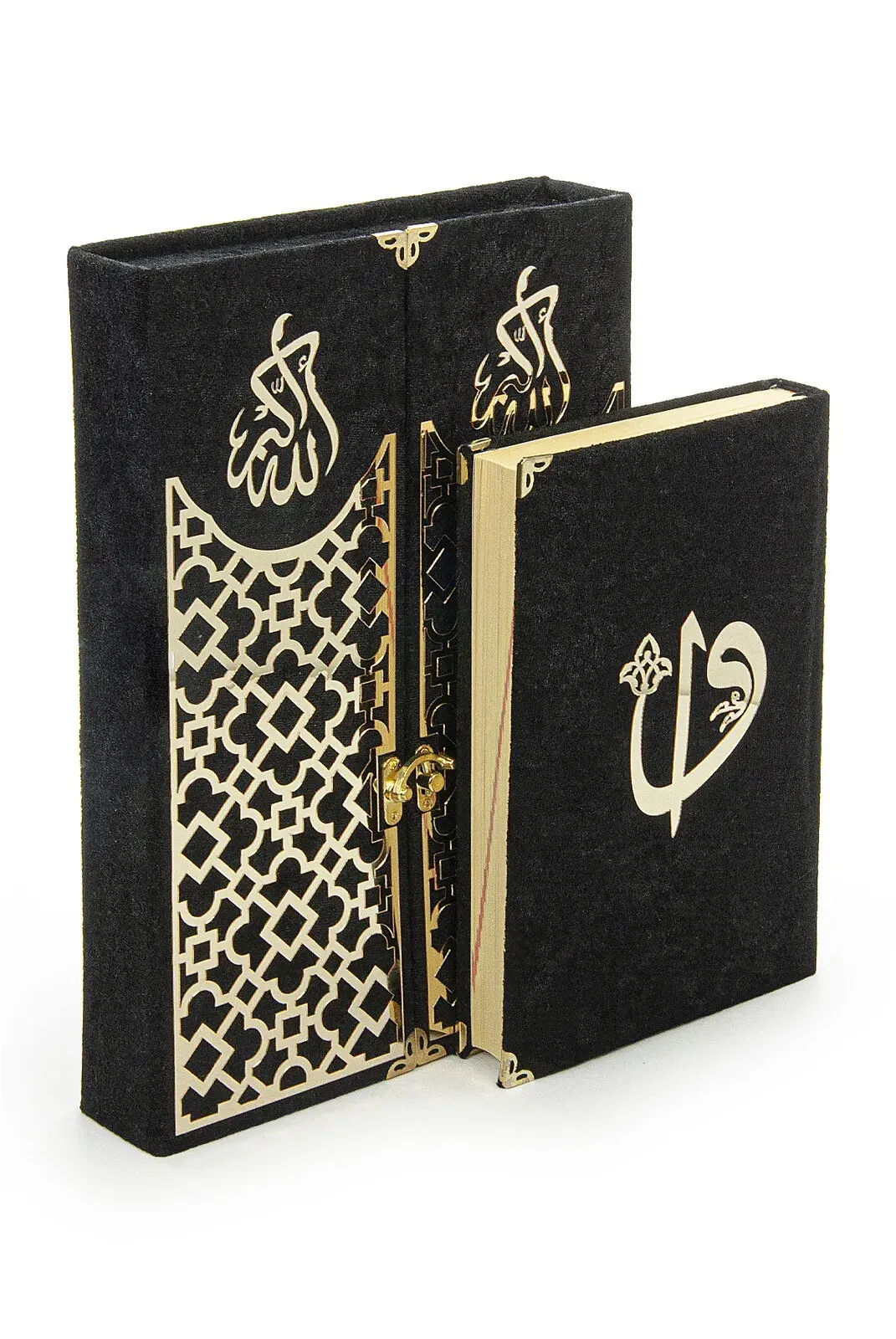Velvet Covered Quran Set with Mültezem Stand - Black