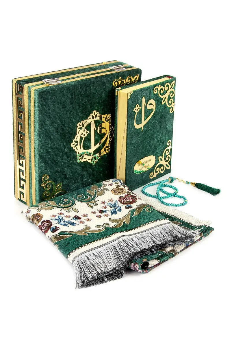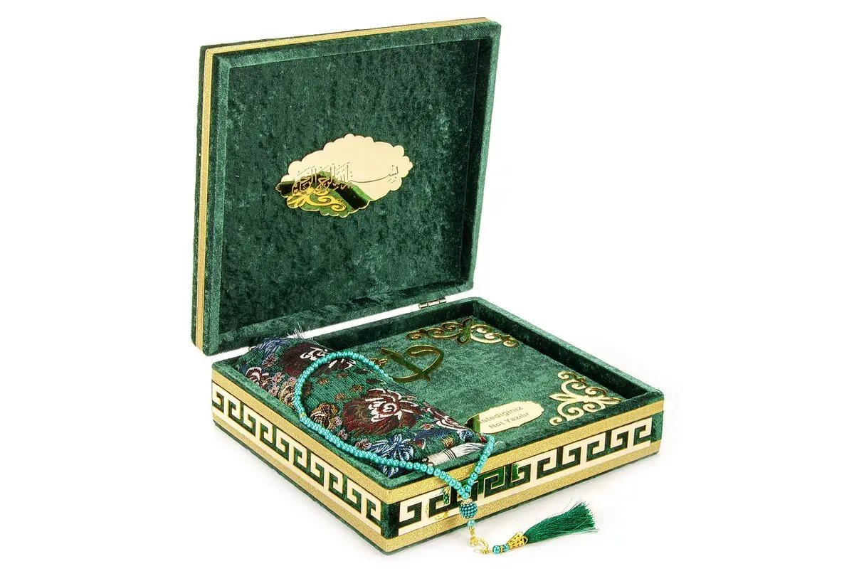 Velvet Covered Box Personalized Gift Quran Set with Prayer Rug