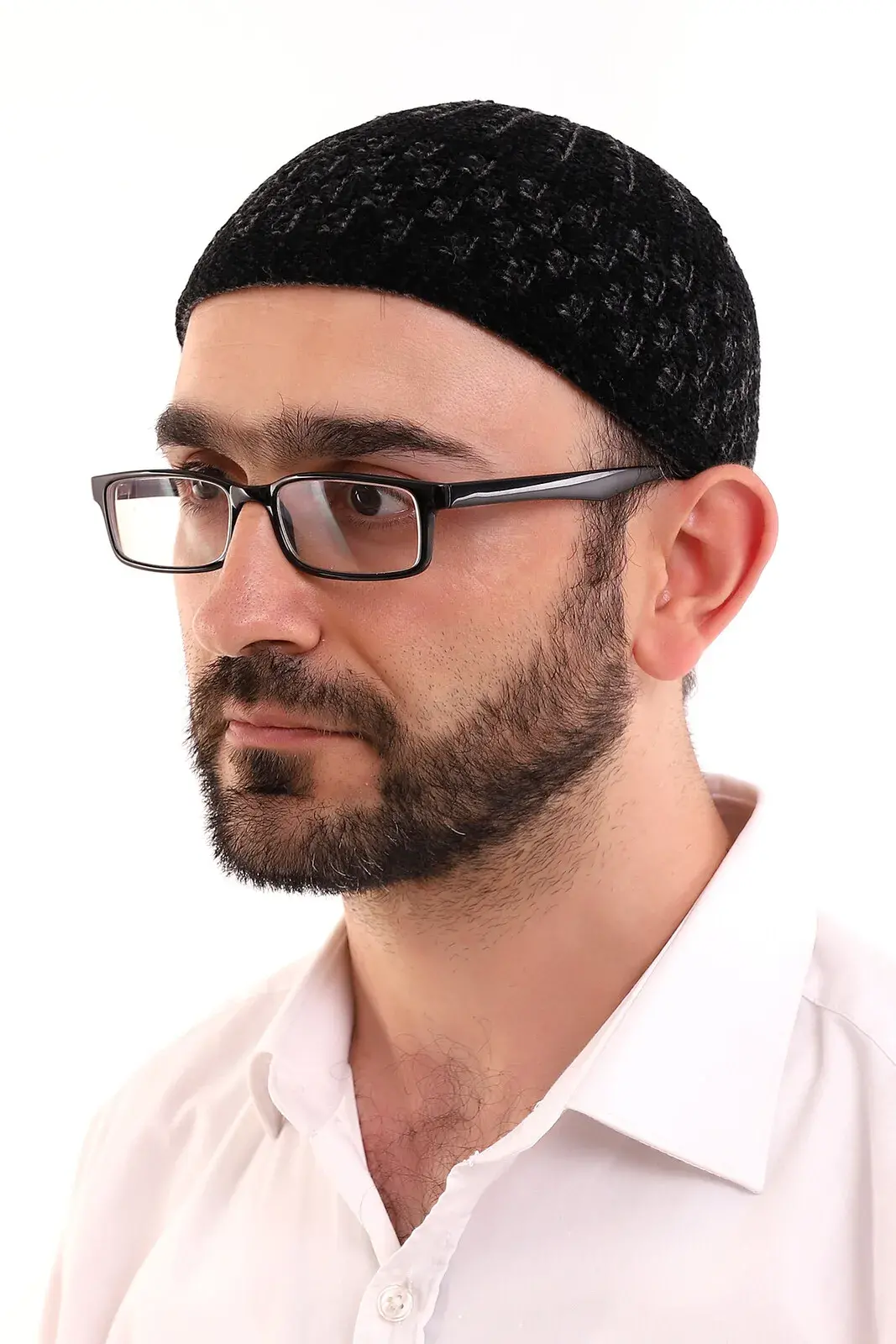 Winter Velvet Skull Straw Pattern - Black-Grey