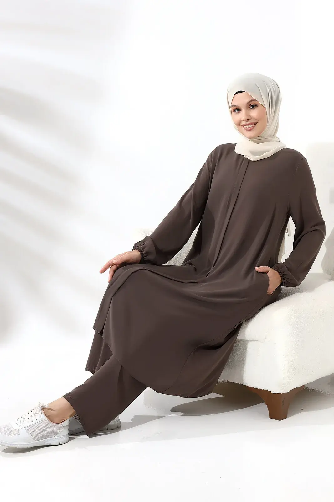 Women's Hajj and Umrah Clothing Hijab Double Set Milky Brown