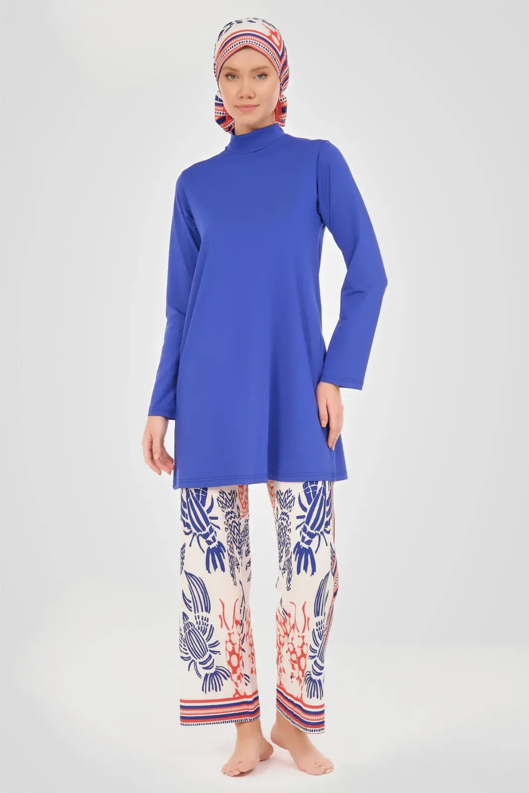 Alfasa Yakamoz Desenli Hızlı Kuruyan Tam Tesettür Mayo - 24607-25