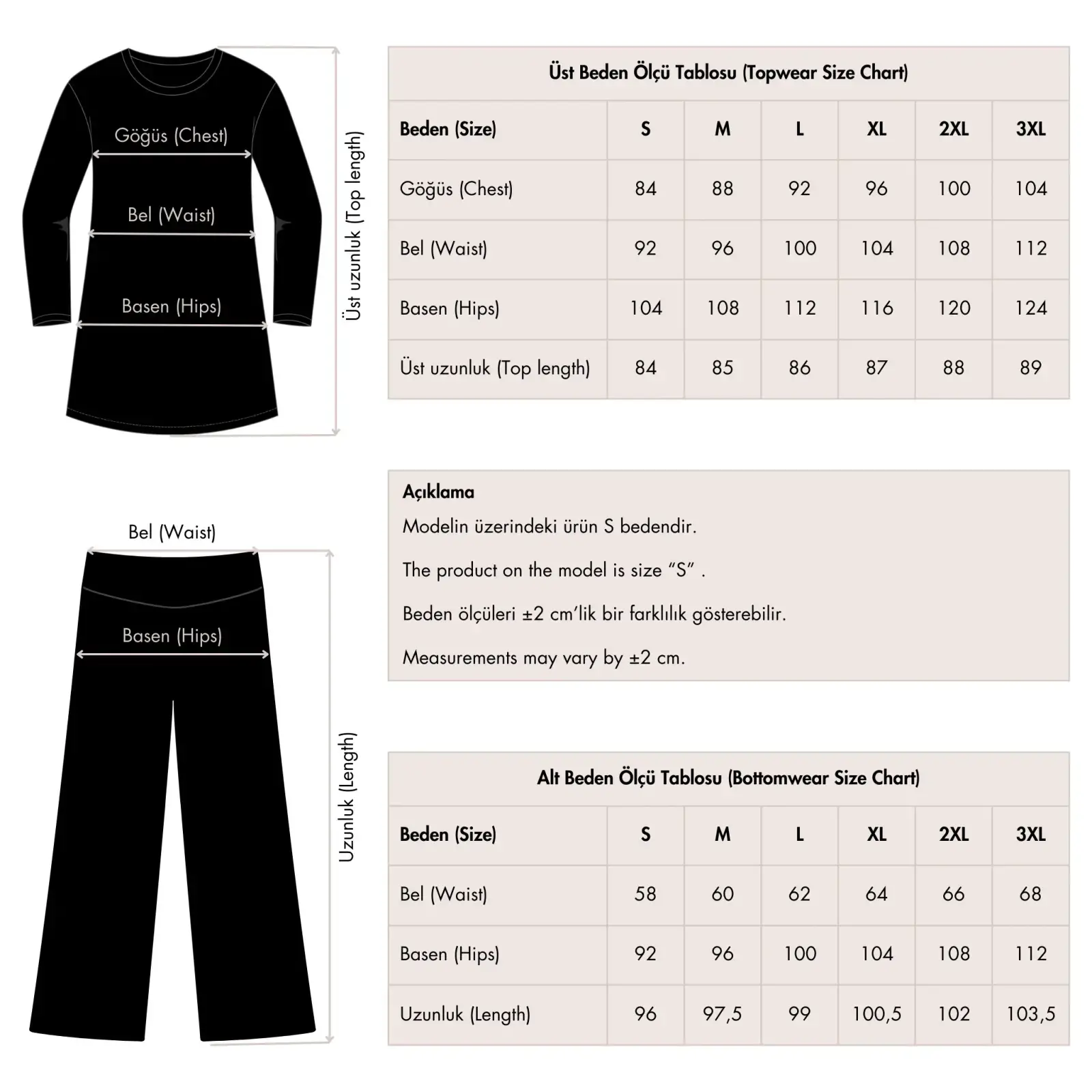 • Üst: Klasik bol kalıp, uzun kollu, dik yaka