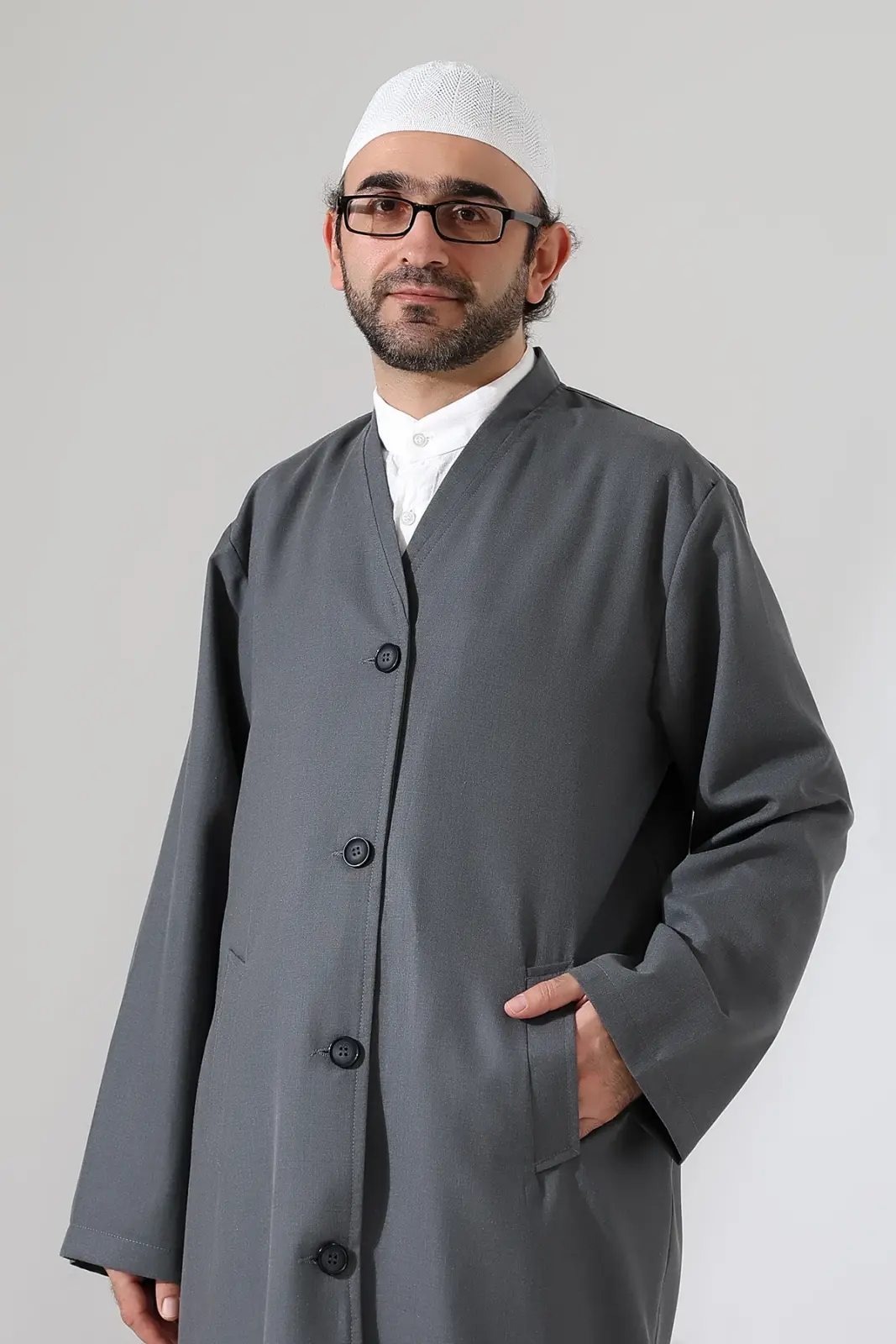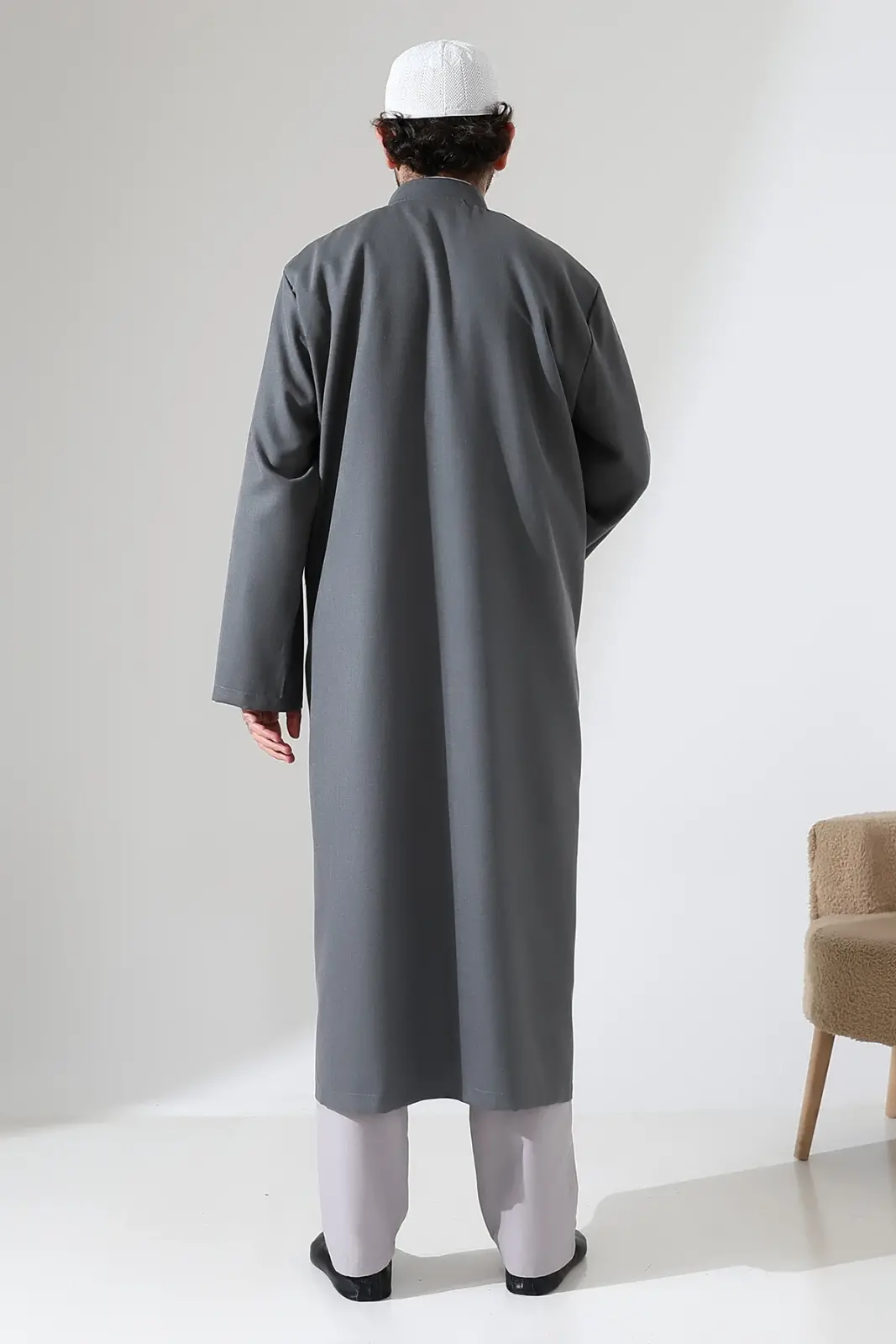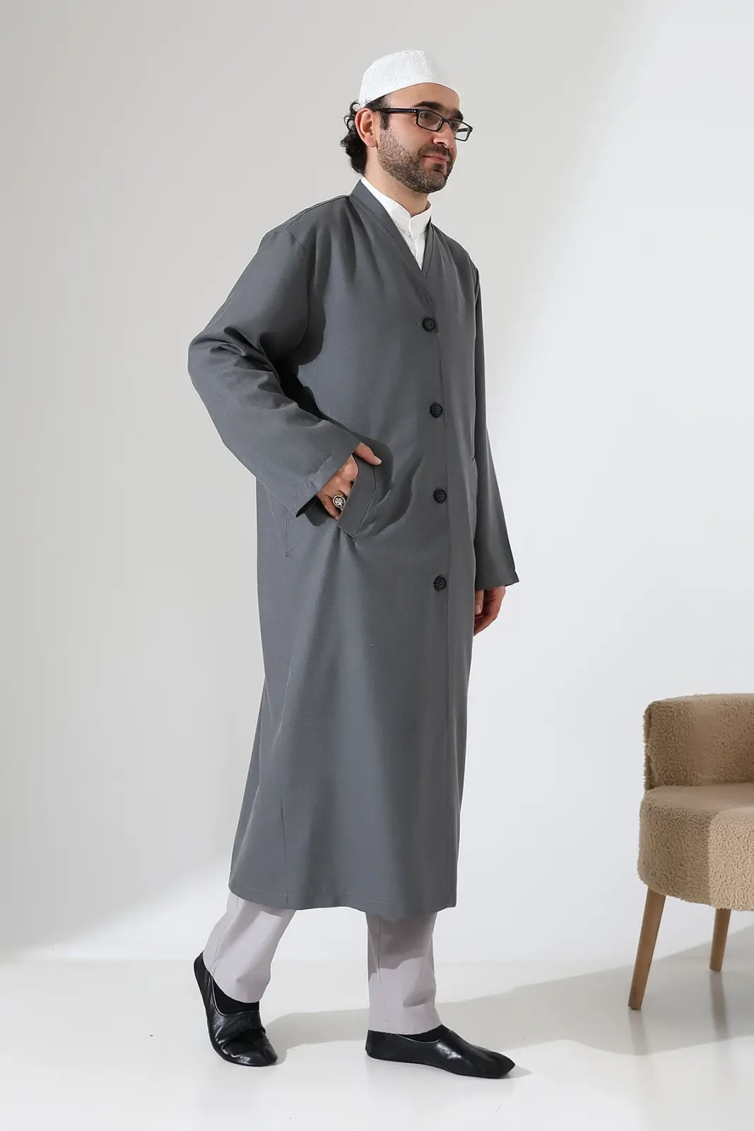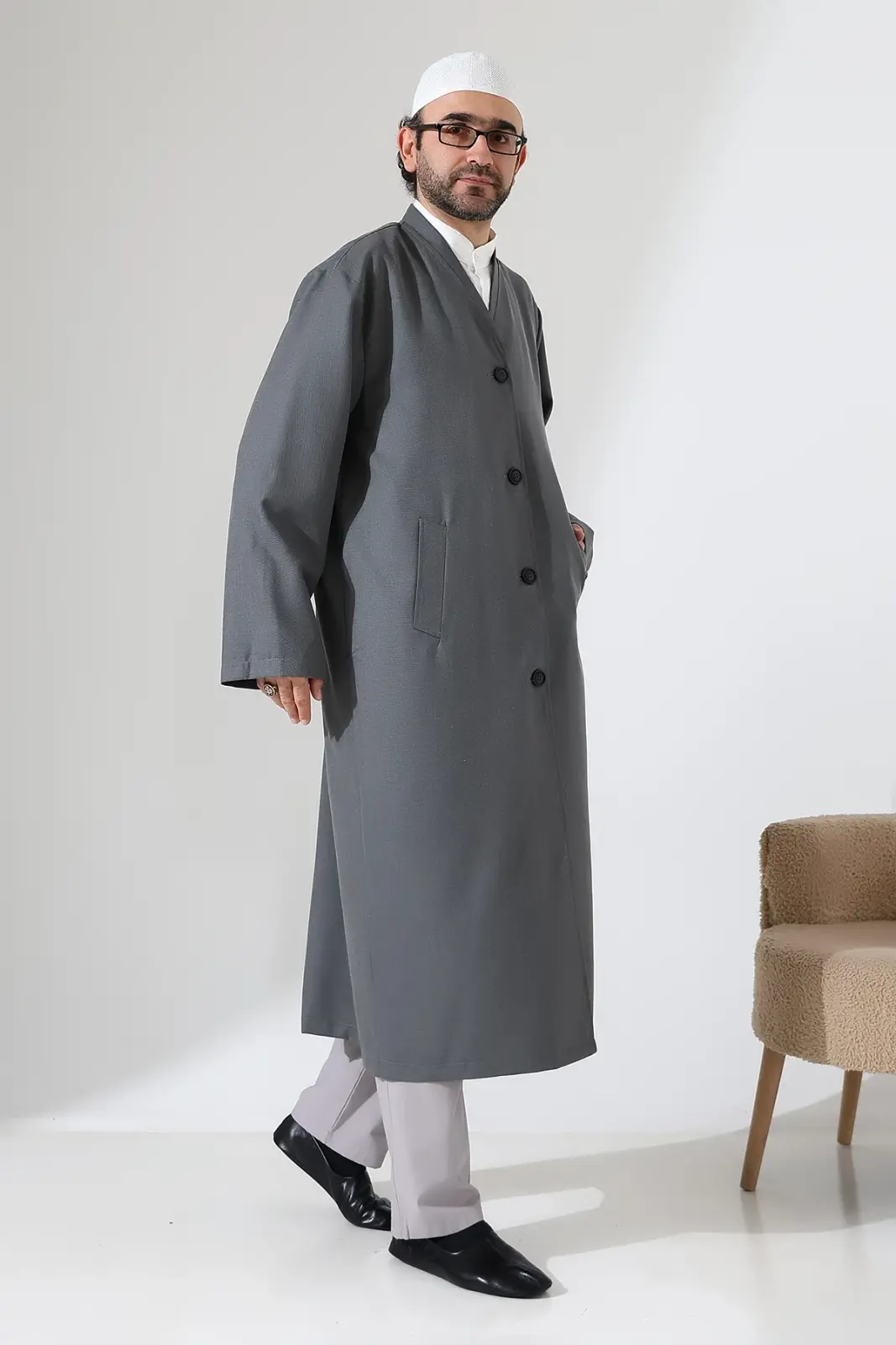 Yarım Astarlı Düğmeli Cepli Buhara Yaka Erkek Cübbe - Antrasit