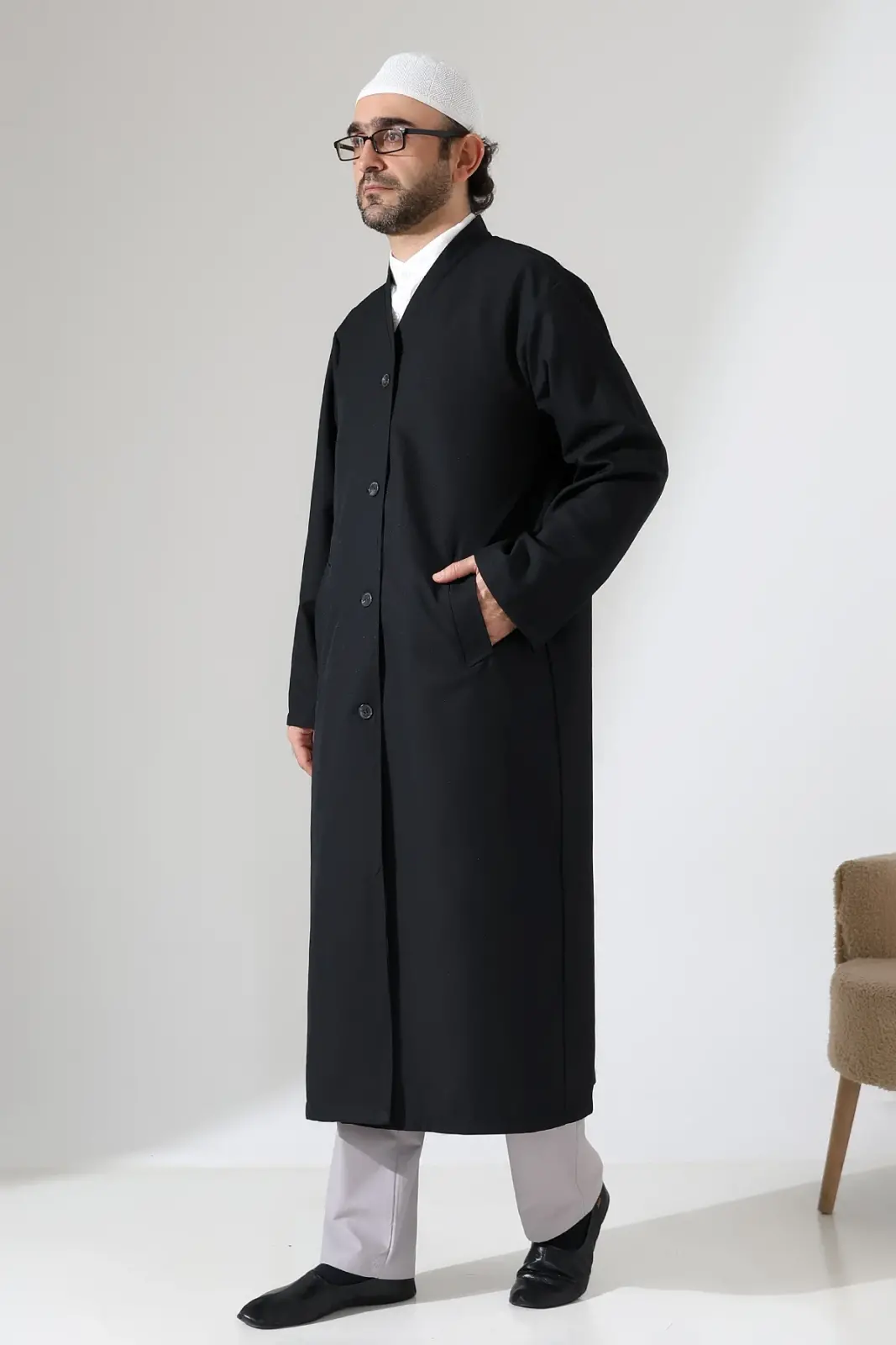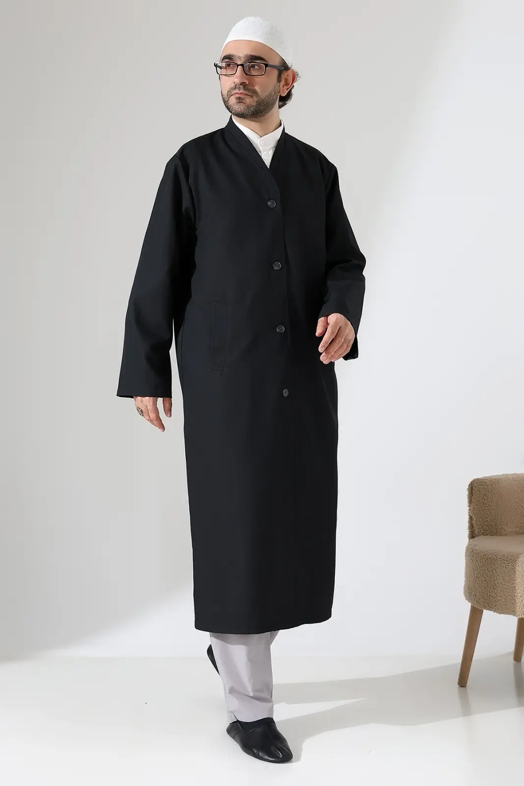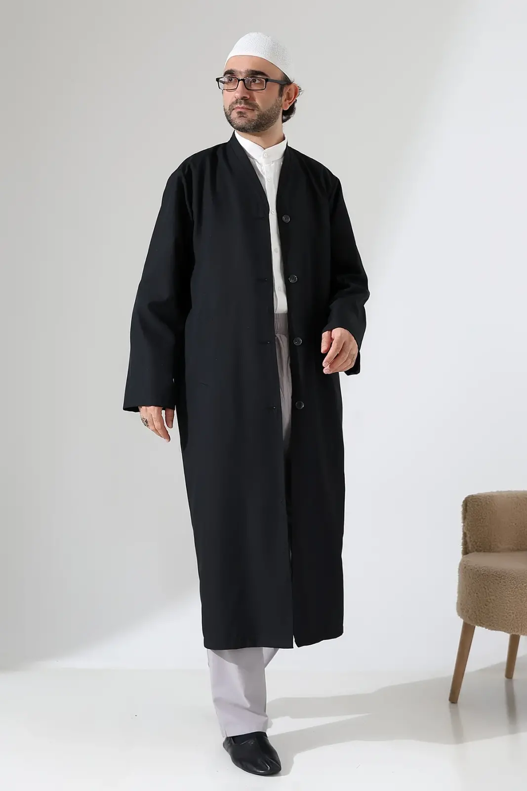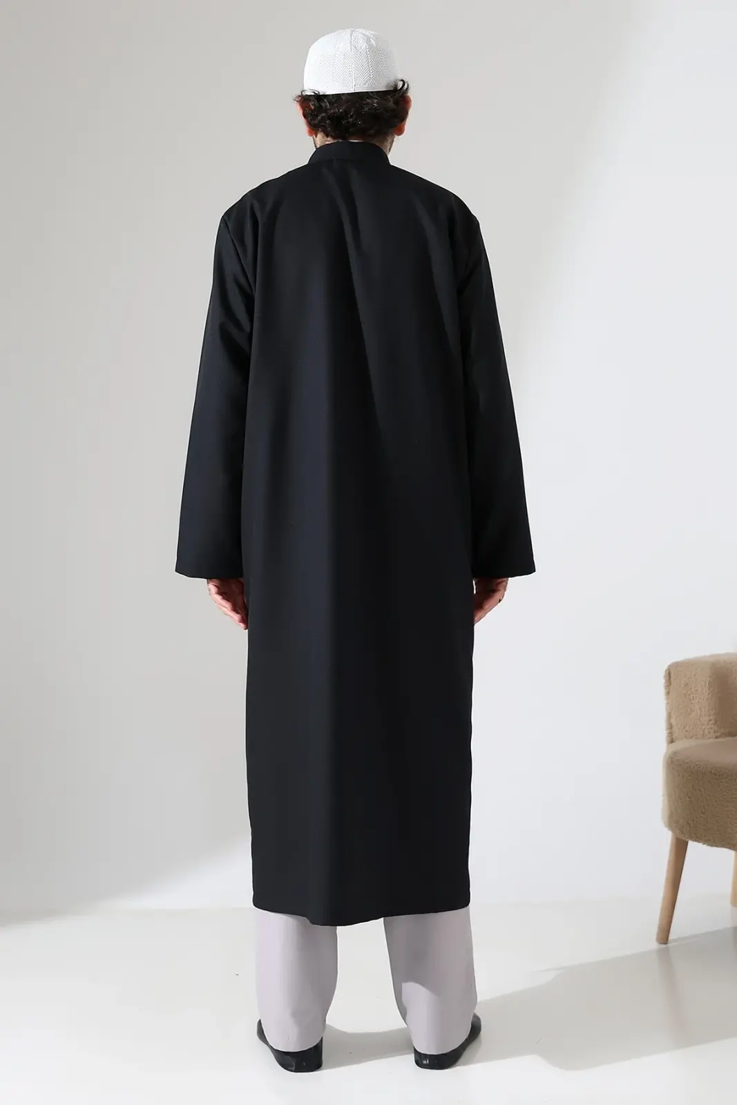 Klasik çizgilere sahip bu Buhara yaka cübbe, rahat kalıbı ve kaliteli kumaş dokusuyla günlük kullanıma ve ibadet ortamlarına uygundur. Yarım astarlı yapısı sayesinde hafif ve kullanışlıdır.
