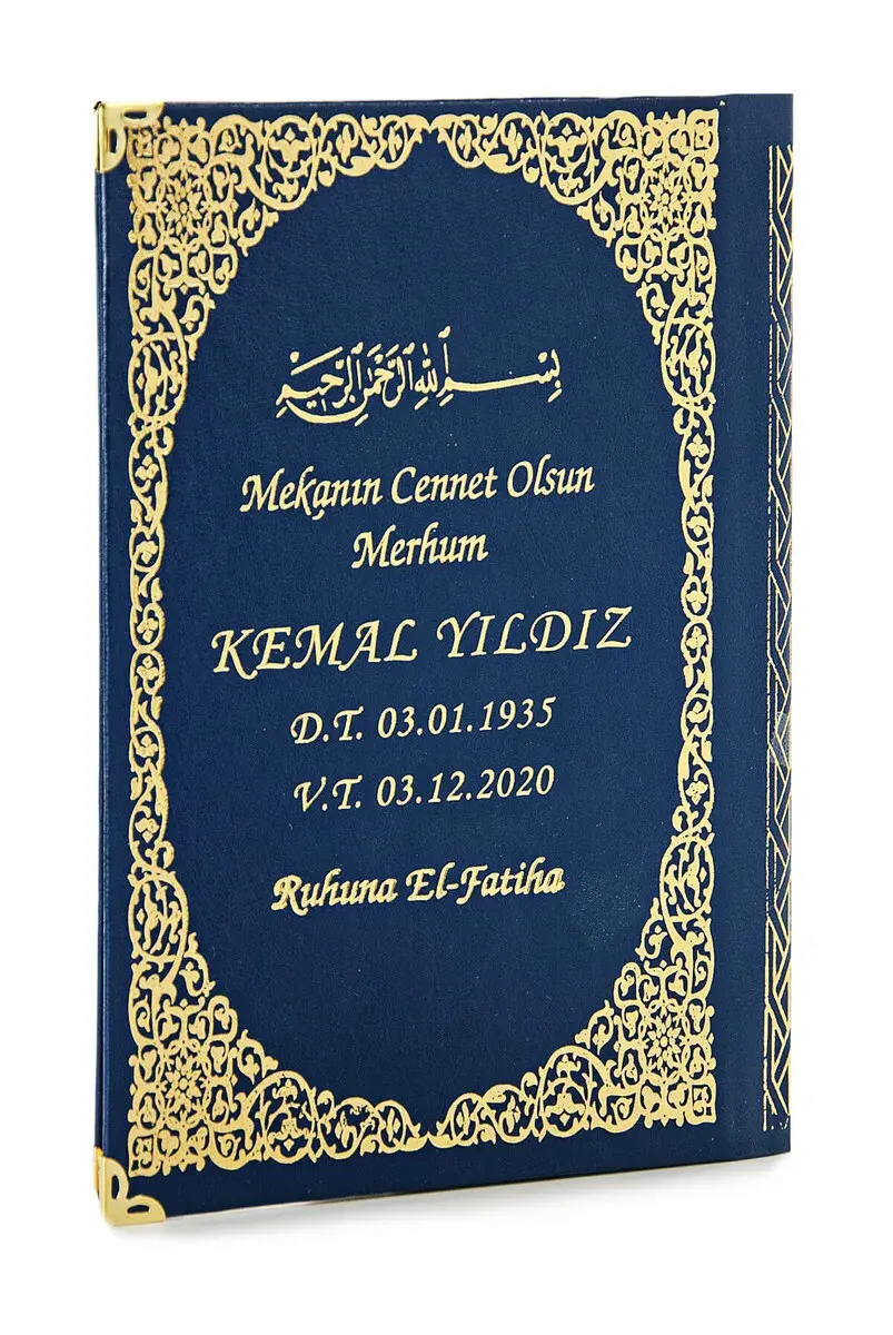 Deceased name, date of birth, date of death, etc. you can send the information you want to be written on the book by sending us a message from the order note section when placing your order.