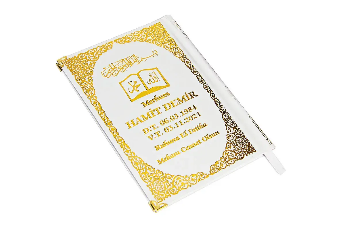 Yasin Book with Name Printed Hardcover - Medium Size - 80 Pages - White Color - Society Gift
