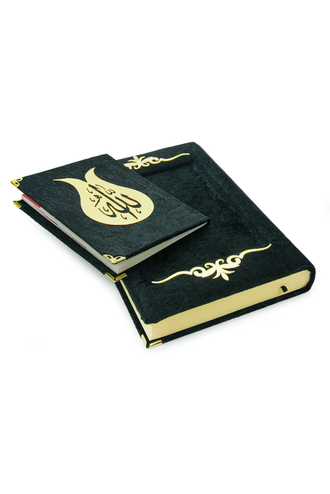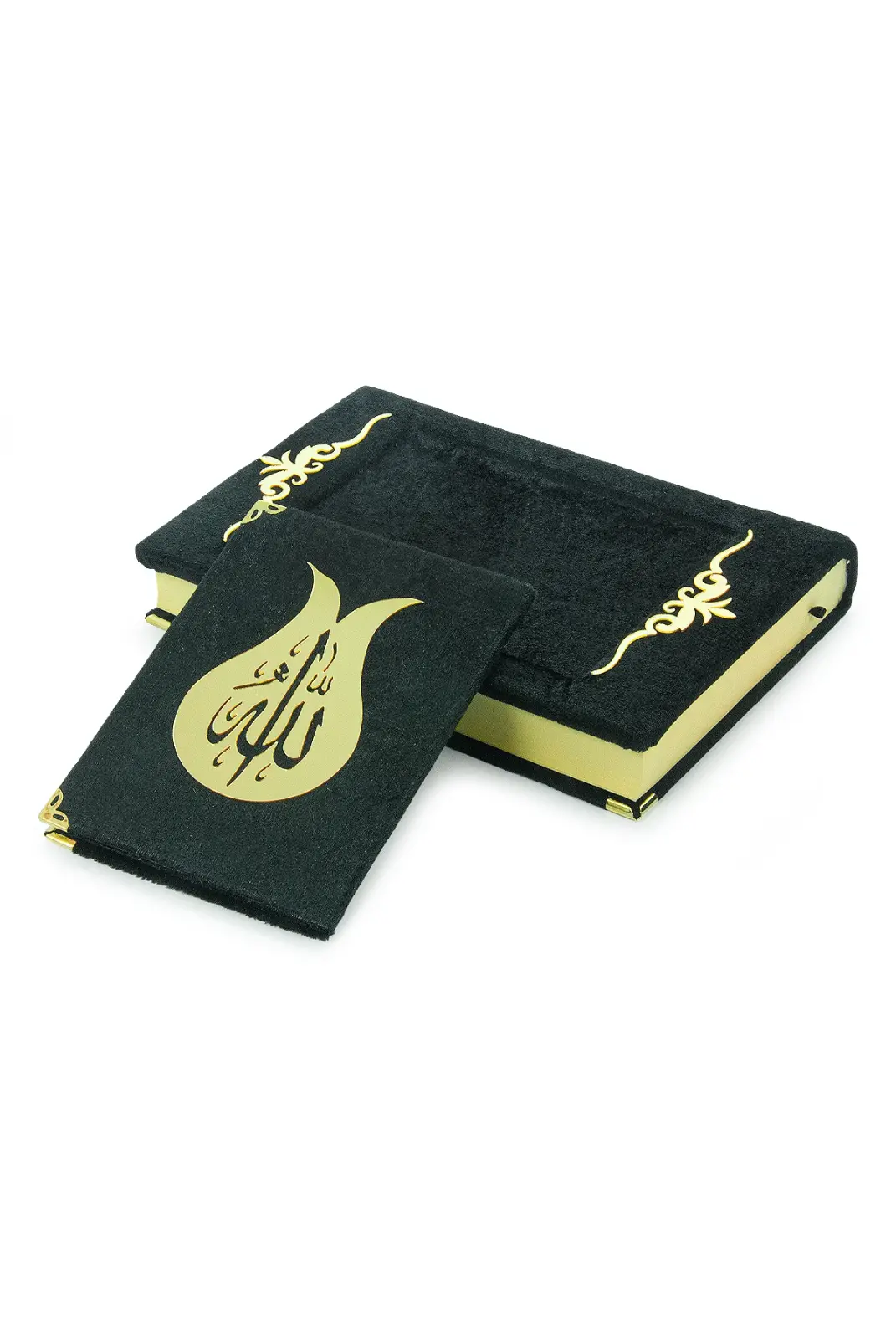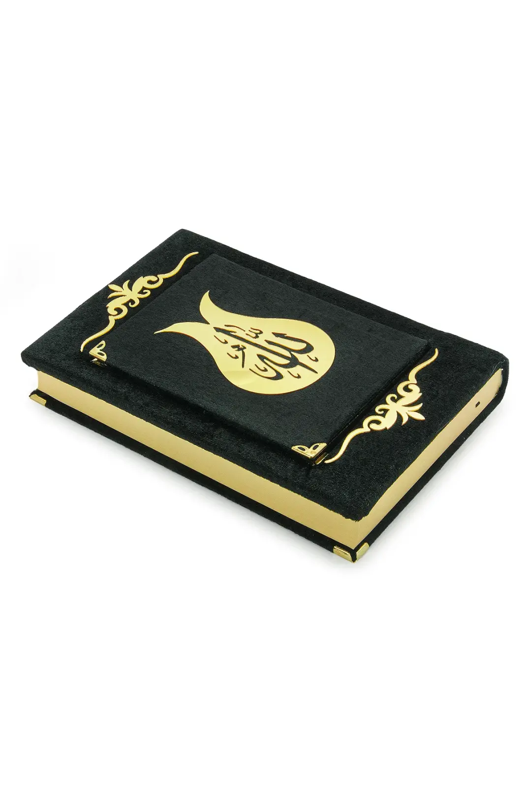 Yasinli Kadife Kaplı Kuranı Kerim Kitabı Seti - Pleksi Süslemeli, Arapça - Siyah