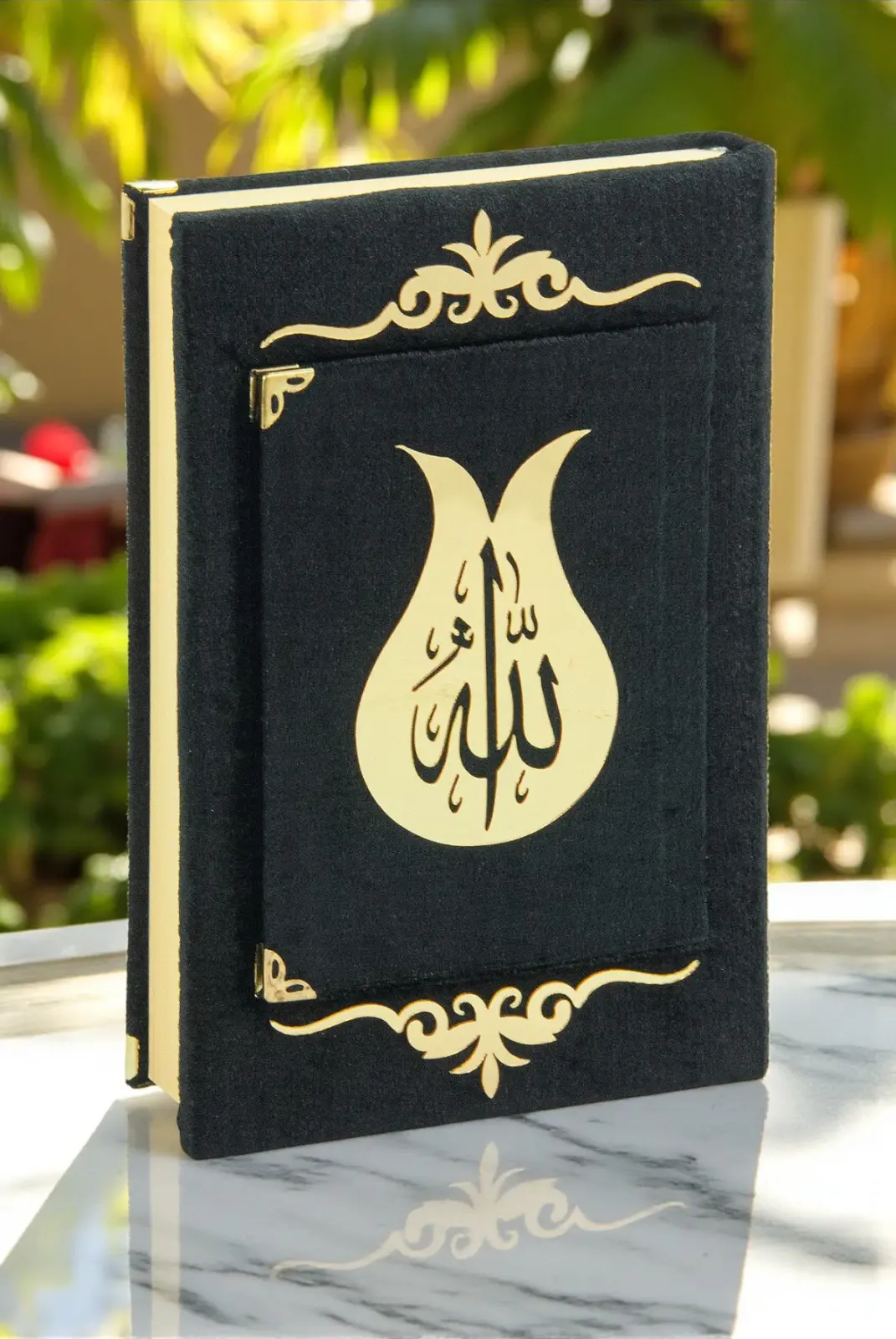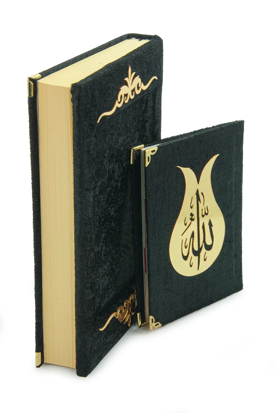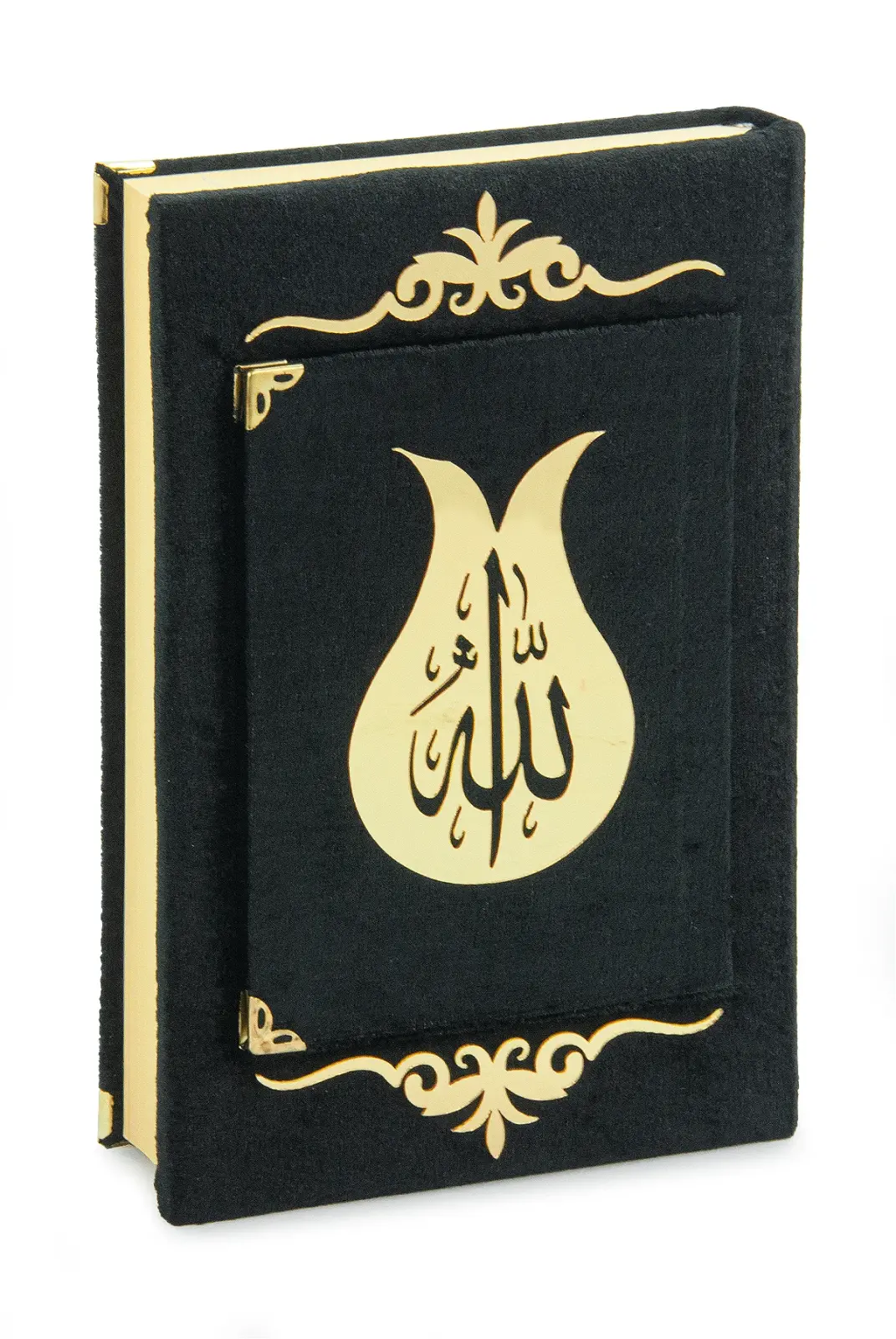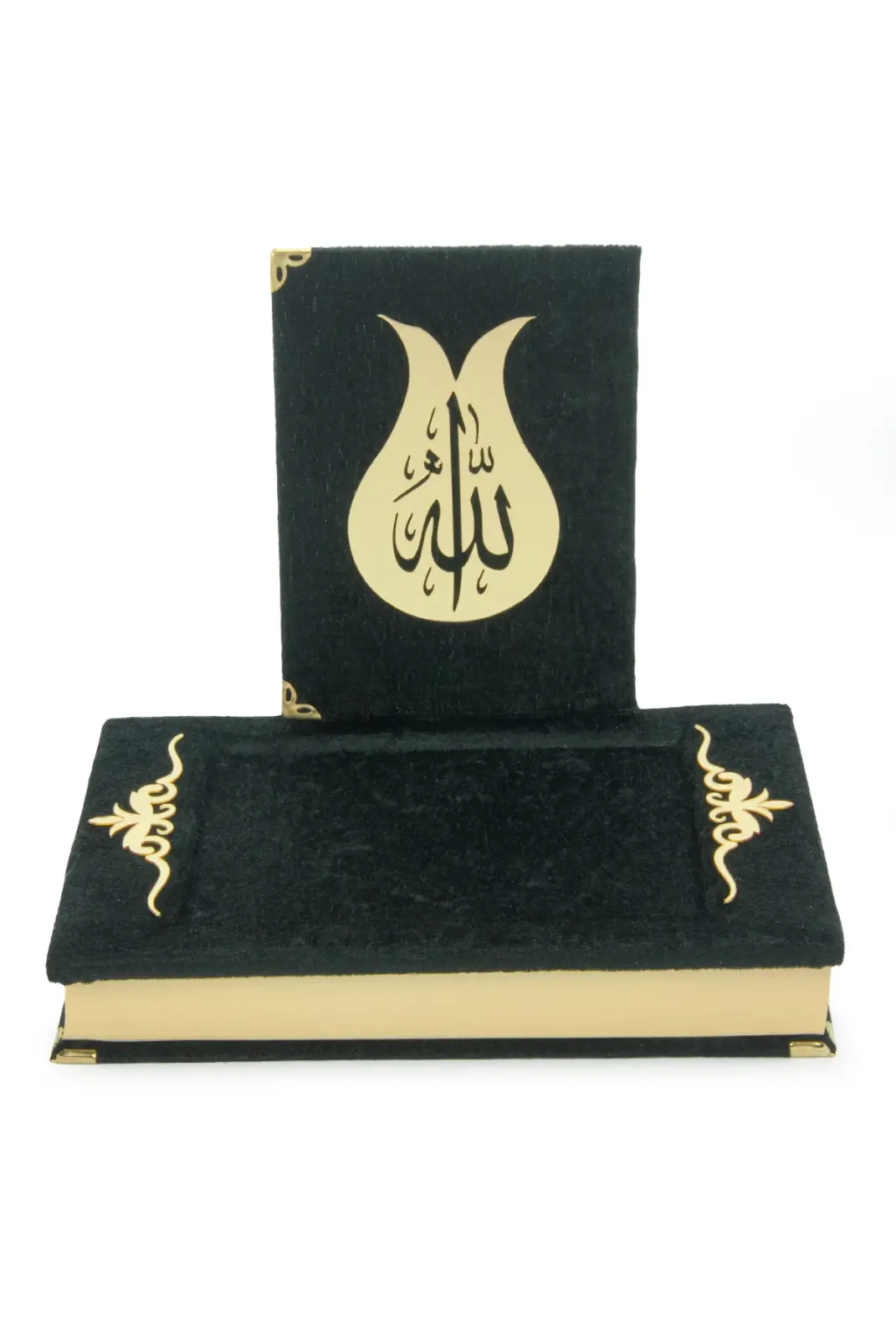 Yasinli Kadife Kaplı Kuranı Kerim Kitabı Seti - Pleksi Süslemeli, Arapça - Siyah
