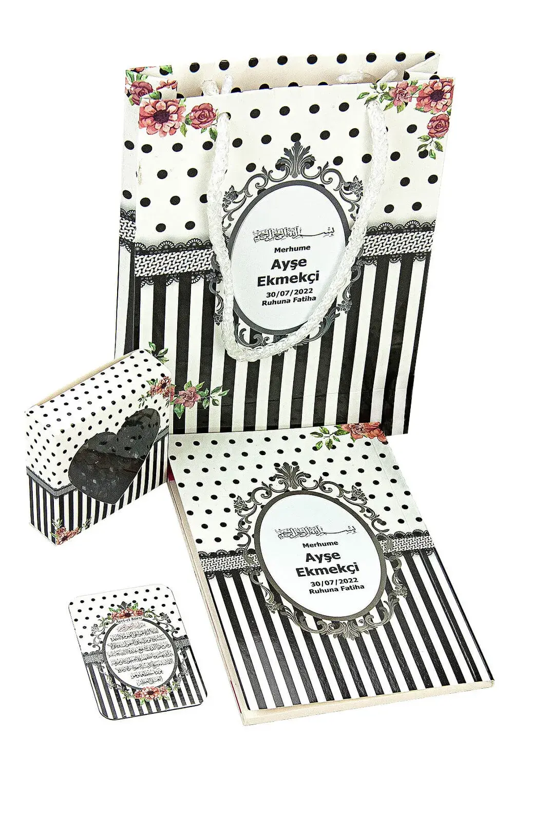 Yasin Set - Bag Size - 64 Pages - Name Tag - Rosary - Magnet - Candy - Mevlid Gift with Cardboard Bag