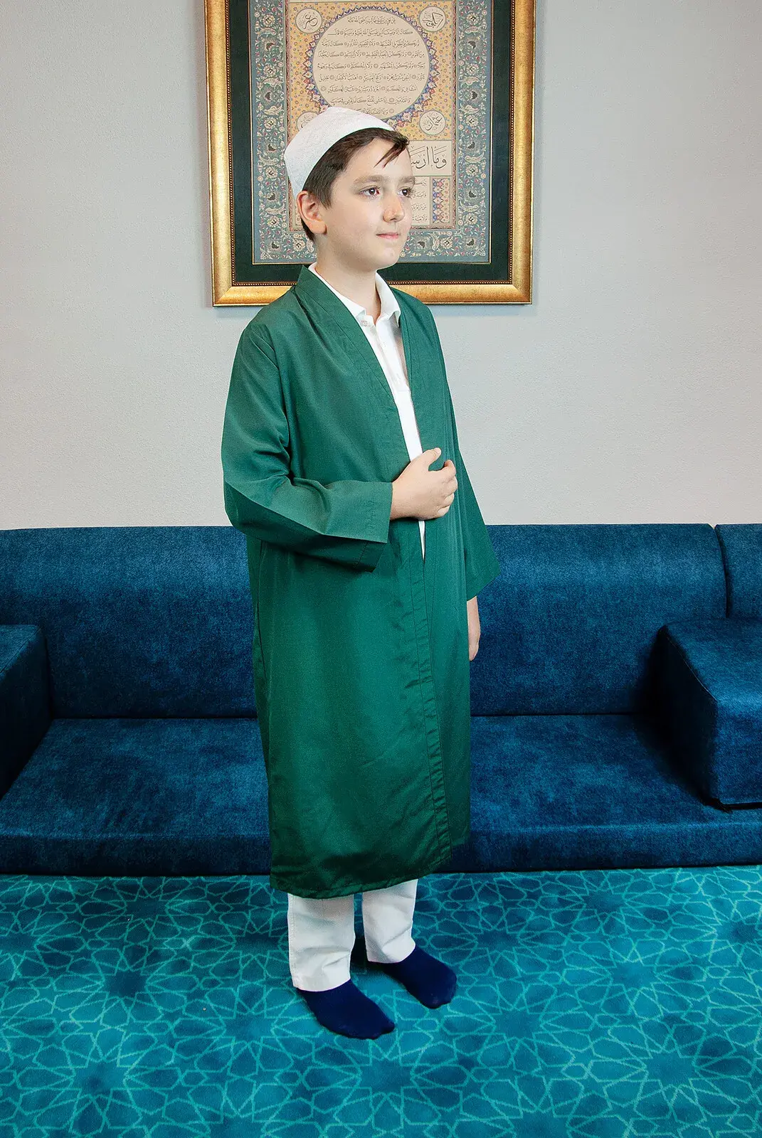 Bu namaz cübbesi, rahat kesimi ve düğmesiz önü açık tasarımıyla çocuklar için hareket özgürlüğü sağlar, bu da ibadet sırasında rahatlıkla giyilmesini sağlar. Hem gündelik kullanıma hem de özel ibadet anlarına uygun bir kıyafettir.