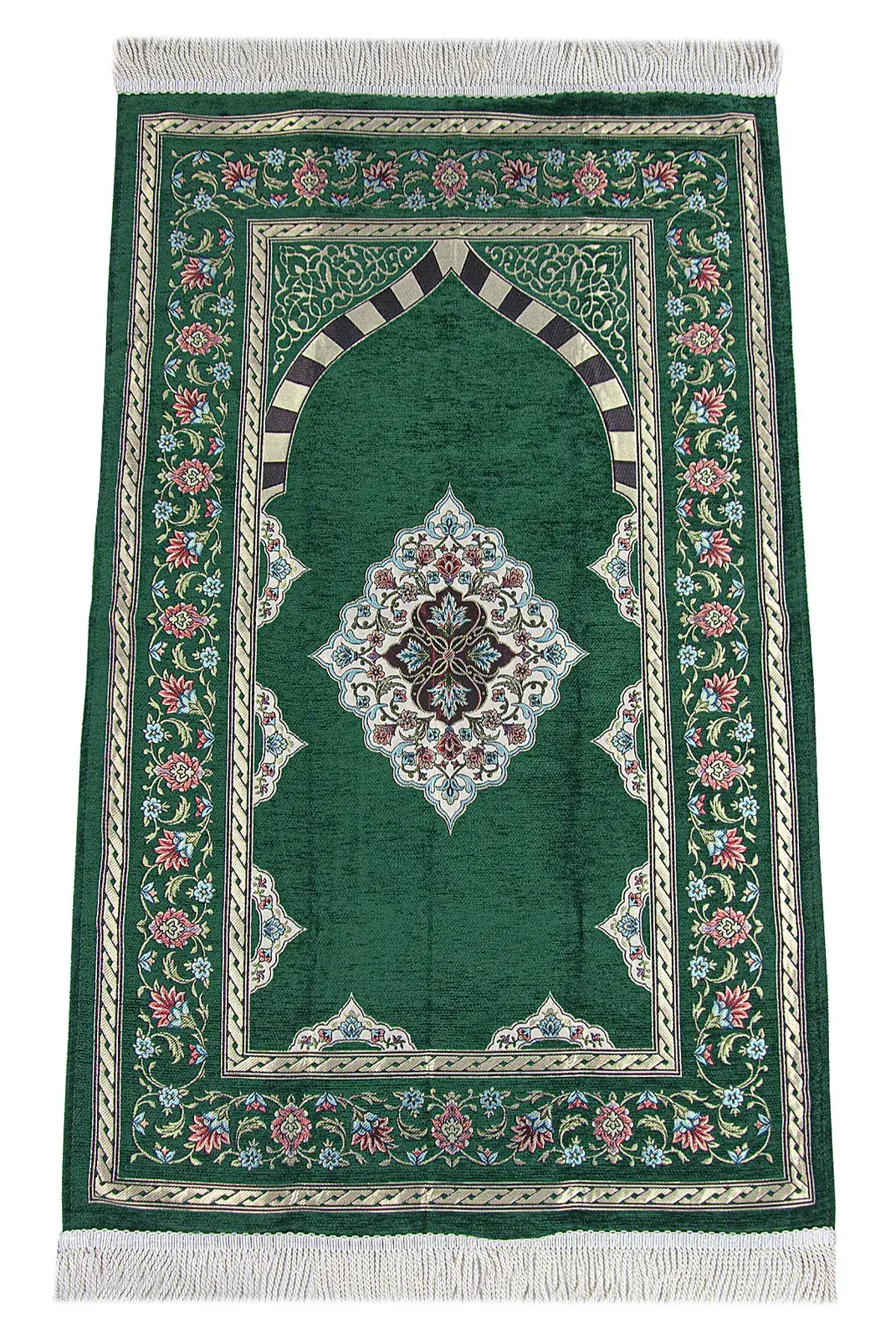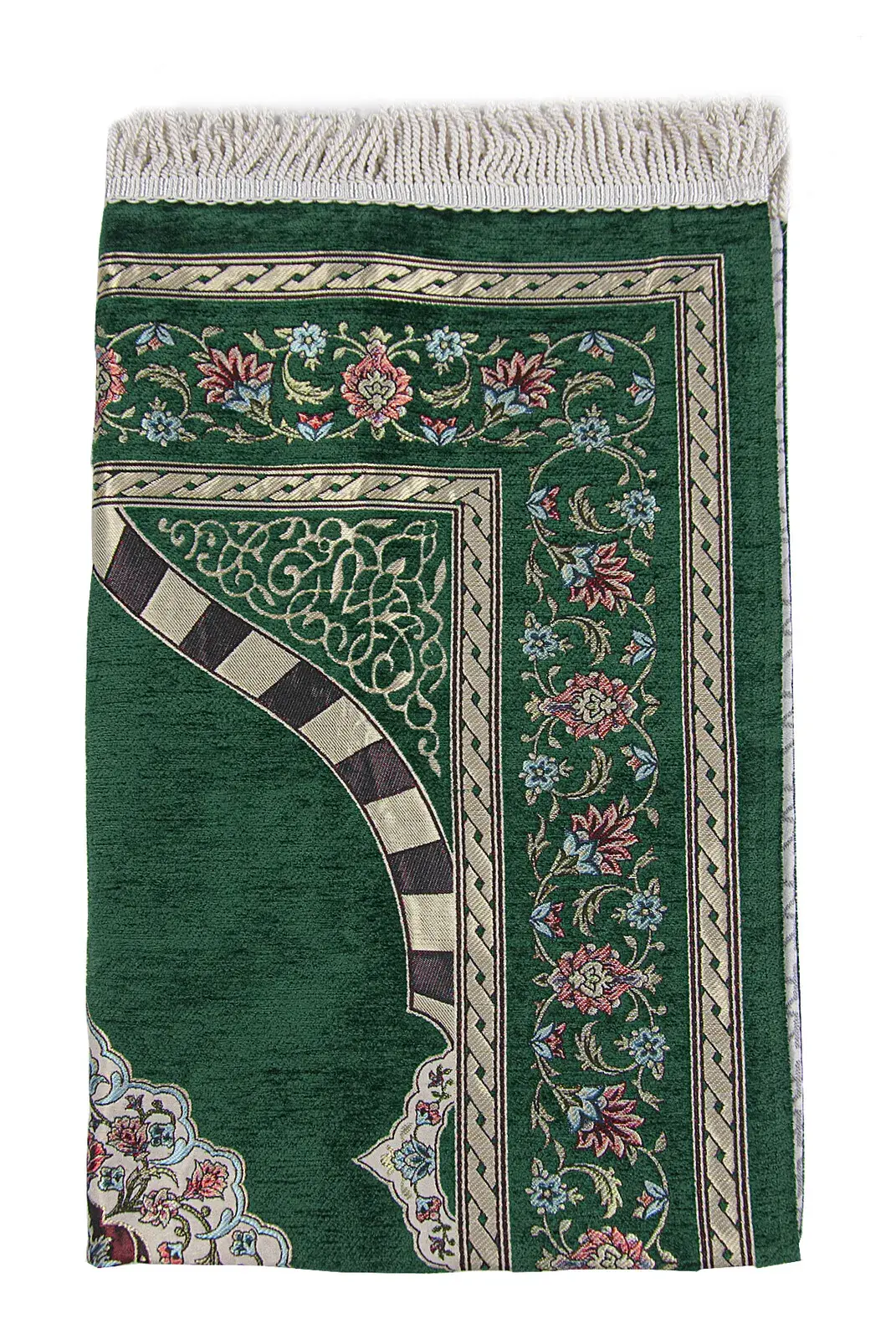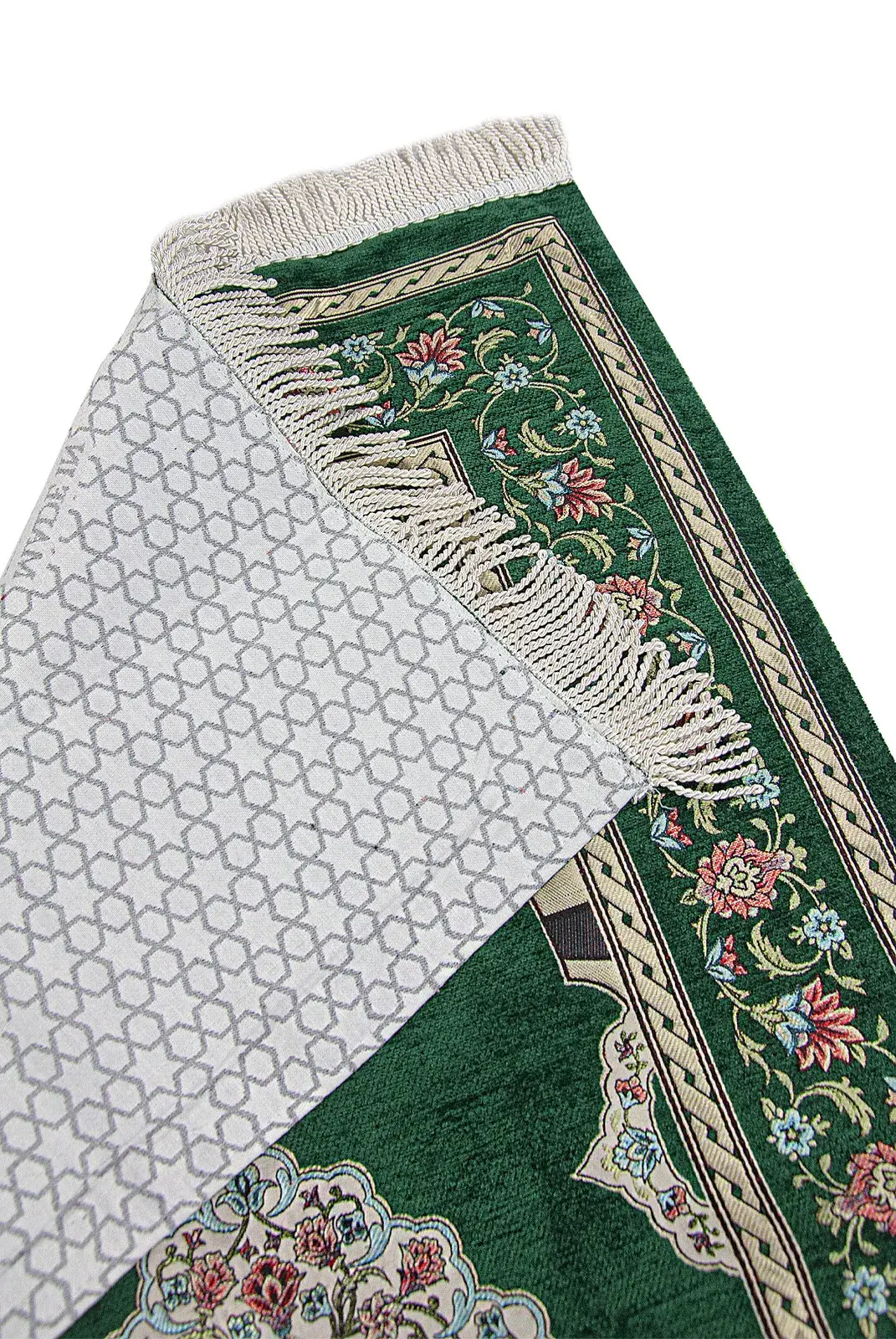 Yeşil Çiçek Motifli Mihraplı Astarlı Şönil Seccade