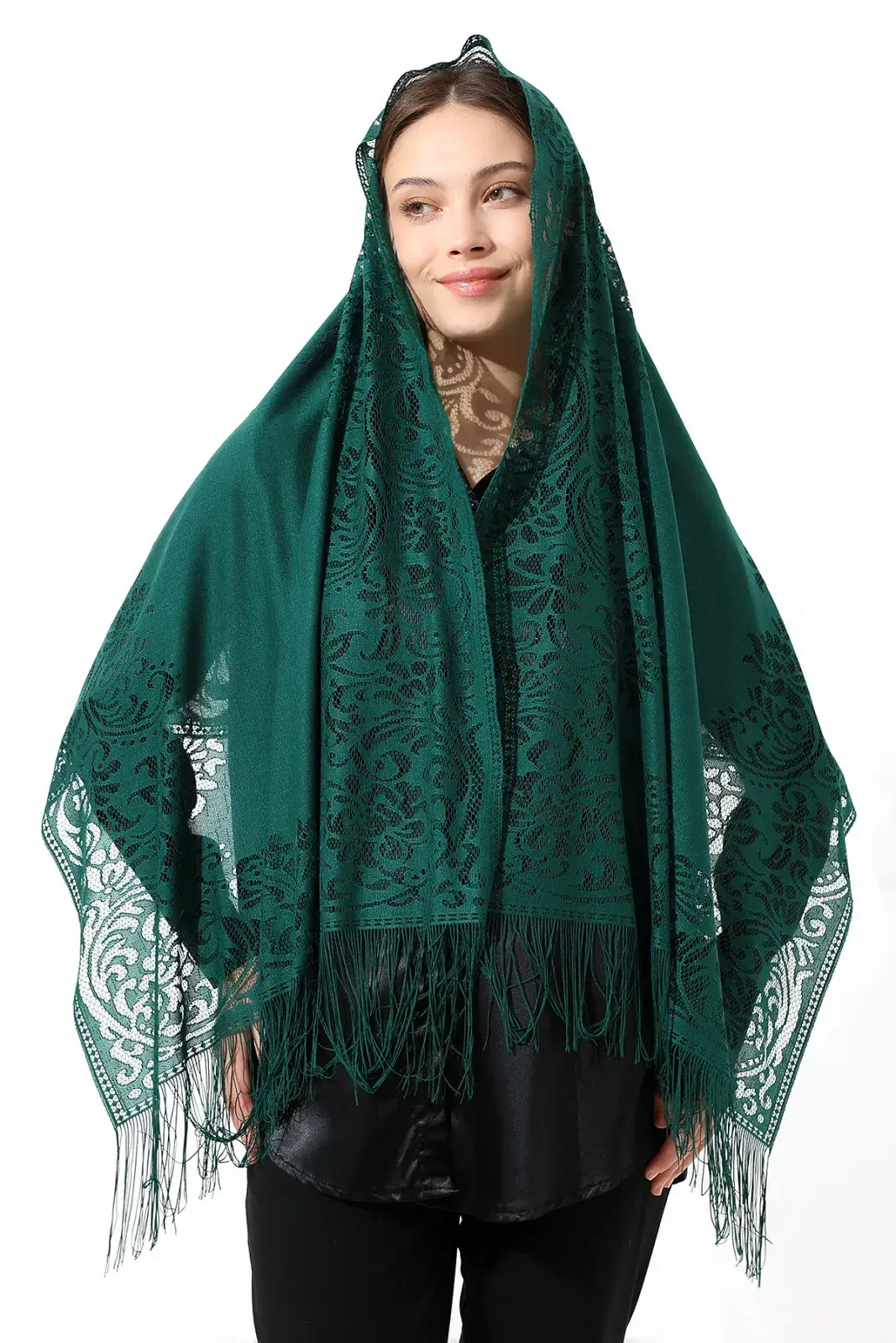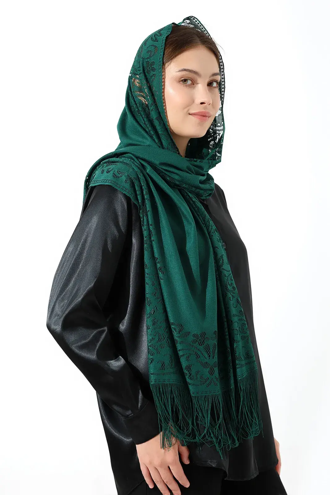 Yeşil Püsküllü Tül Şal Mevlüt Örtüsü