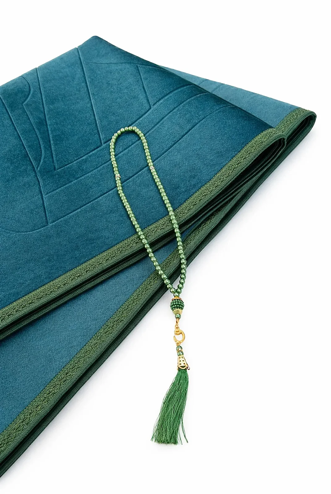 Yumuşak Kadife Dokulu Mihrap Desenli Peluş Seccade Yeşil
