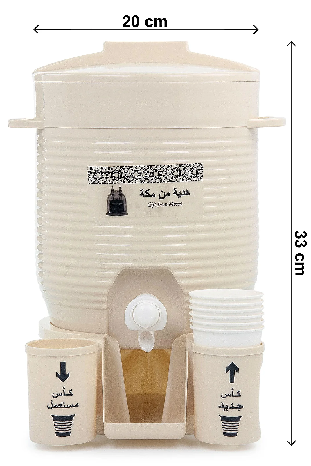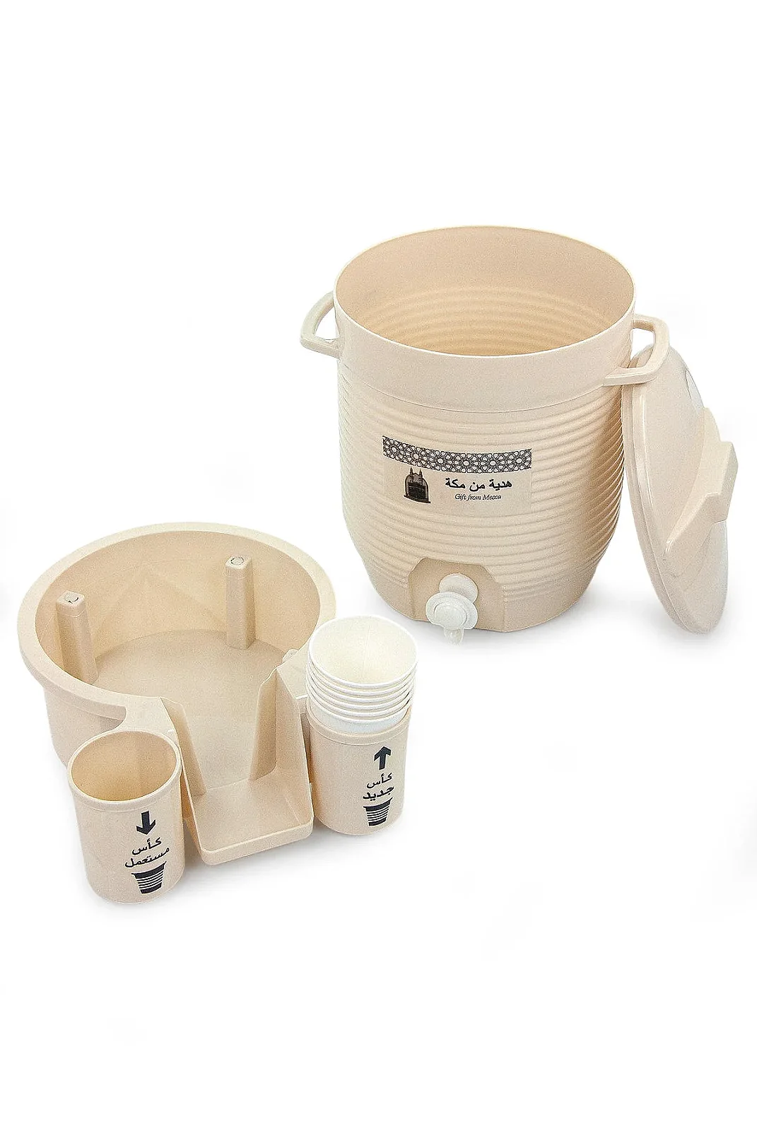 Zemzem suyunuzu düzenli, hijyenik ve pratik şekilde dağıtmak için özel olarak tasarlanmış zemzem sebili modeli. Musluklu yapısı sayesinde kolay kullanım sunarken, bardak haznesi ile toplu kullanımda büyük kolaylık sağlar.