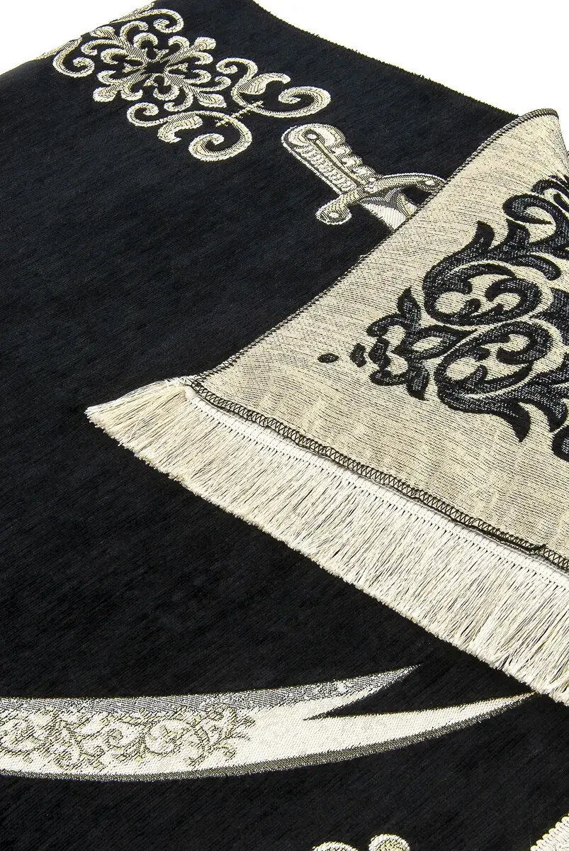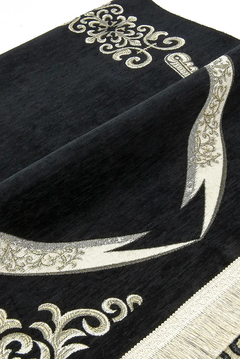 Inspired by the cover of the Kaaba, it is a prayer rug named Kaaba Cover, specially produced to breathe the spiritual air and bring those sacred places to our minds.