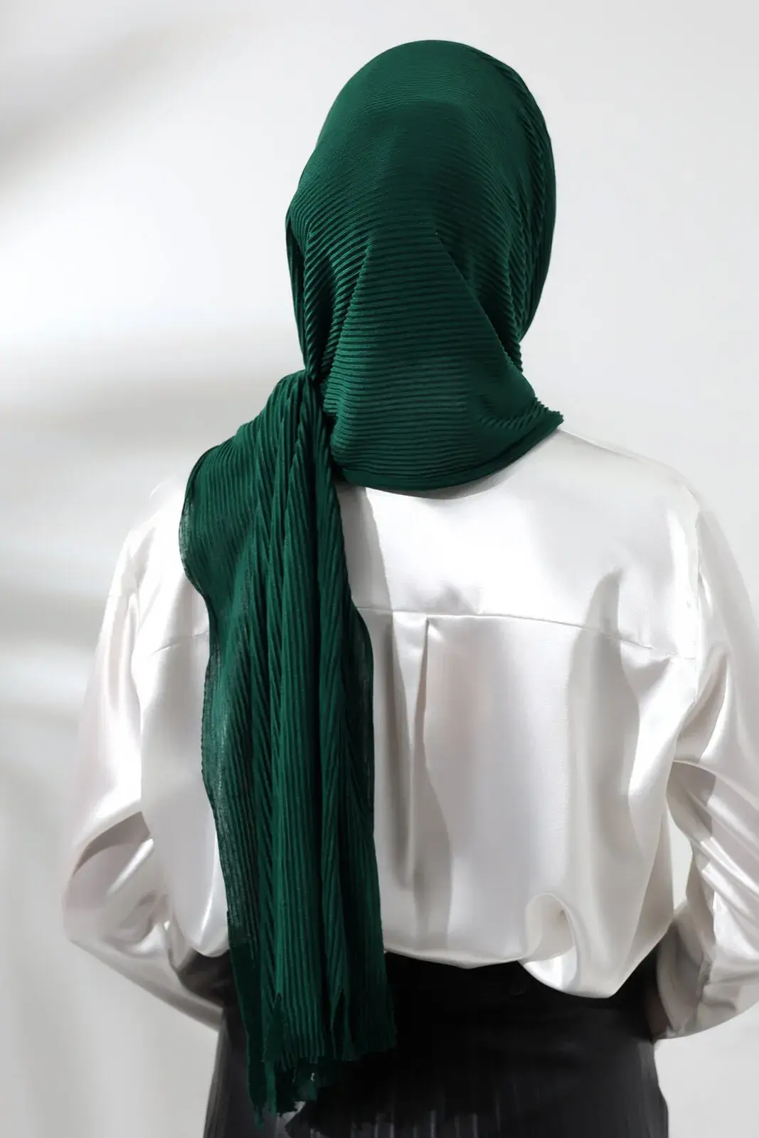 Zümrüt Yeşili Tesettür Hazır Pratik Fitilli Pamuklu Şal